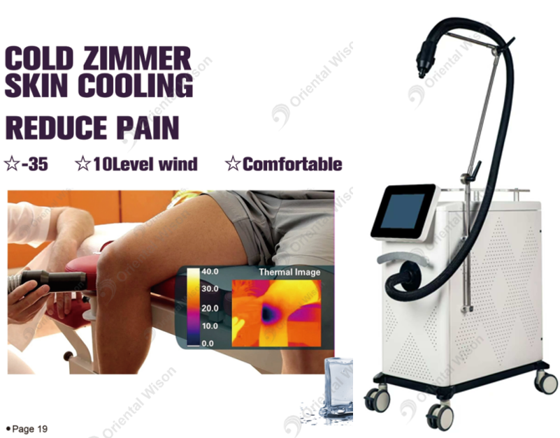 Zastosowanie:Skin Zimmer Cooling Machinemoże połączyć się z całą laserową maszyną do pracy. Takie jak: Laser Alexandrite, pikosekundowy laser,Laser ułamkowy CO2I tak dalej.