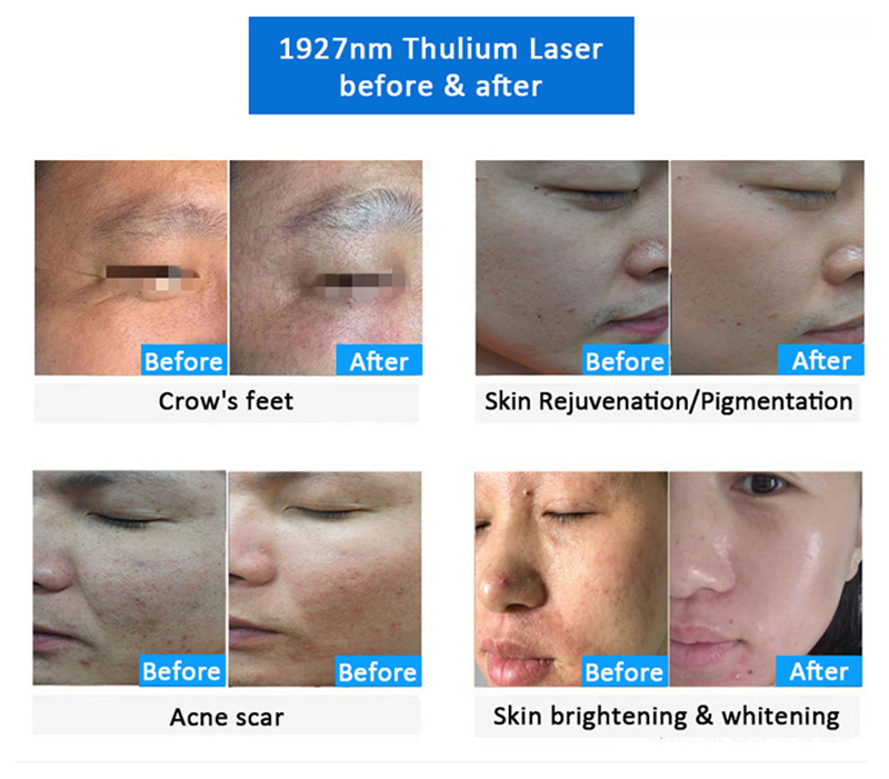 .1927NM THULIUM LASER, przez delikatne, nie-eblacyjne ułamkowe zabieg pomaga skórze odzyskać zdrowy wygląd i staje się bardziej promienna i elastyczna. Przy wyborze intensywności mocy od łagodnego do wysokiego, zabiegi można wykonywać przez cały rok, bez okresu odzyskiwania.