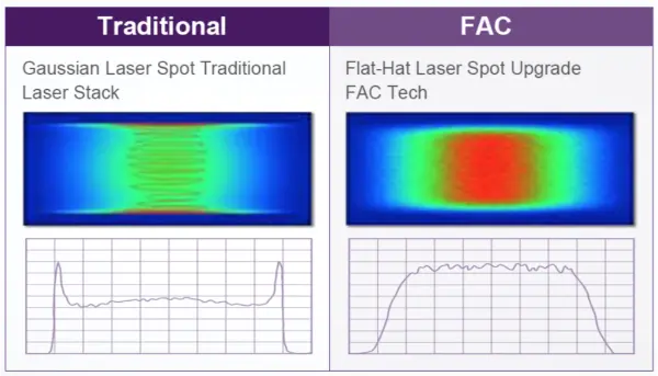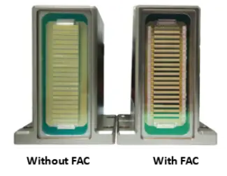 Lasery diodowe są generalnie nieefektywne ze względu na dużą, asymetryczną rozbieżność, szczególnie w szybkiej osi. Technologia FAC rozwiązuje ten problem poprzez umieszczenie cylindrycznej soczewki o wysokiej aperturze numerycznej (NA≈0,8) bezpośrednio przed emiterem lasera, tworząc skolimowaną wiązkę o dużej intensywności