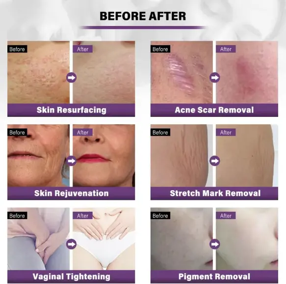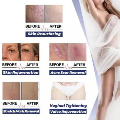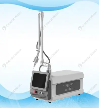 2. Ten lekki system zapewnia precyzyjną energię laserową CO2 w ułamkowym wzorze, lecząc tylko ułamek skóry. Ta metoda promuje szybsze leczenie niż tradycyjne lasery. Jest idealny do delikatnych obszarów i popularny ze względu na jego wydajność i skrócony czas regeneracji pacjentów.